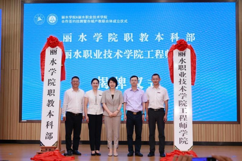 麗水學院校黨委書記周一紅指出,職教本科部(麗水職業(yè)技術學院工程師學院)的成立,標志著學校在建設職業(yè)技術大學的新征程上邁出了關鍵的一大步。麗水學院黨委副書記、校長李安指出,設立職教本科部,聯(lián)合開展麗水職教本科教育,必將推動麗水職業(yè)教育邁向新臺階。隨后,麗水經(jīng)濟技術開發(fā)區(qū)管委會、麗水學院、麗水職業(yè)技術學院、行業(yè)協(xié)會、重點企業(yè)代表共同啟動了麗水市域產(chǎn)教聯(lián)合體。